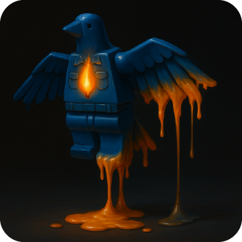 近期作品中,樂高的輪廓開始崩解、融化、壓縮,